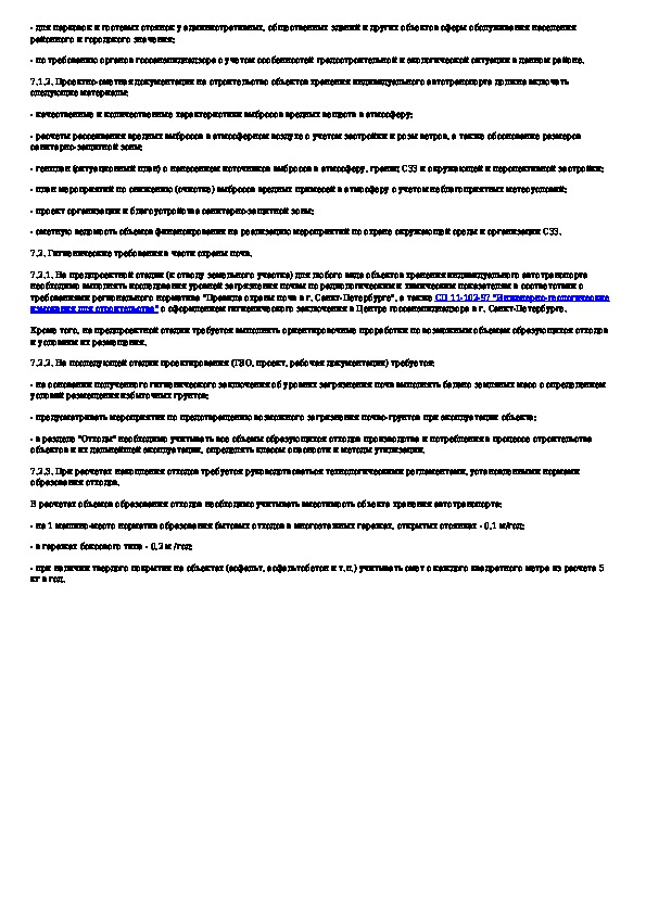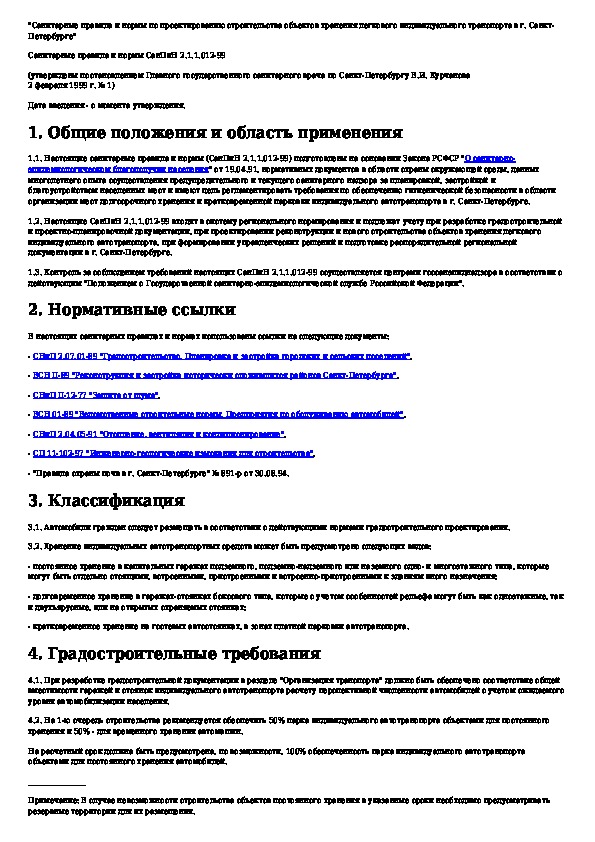 Санитарные правила и нормы по проектированию строительства объектов хранения легкового индивидуального транспорта в г. Санкт-Пет