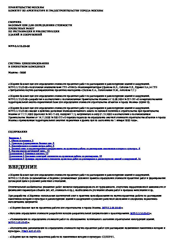 Наша цель состоит в том, чтобы предоставить вам быстрый доступ к содержанию документа Сборник базовых цен для определения стоимости проектных работ по реставрации и реконструкции зданий и сооружений.