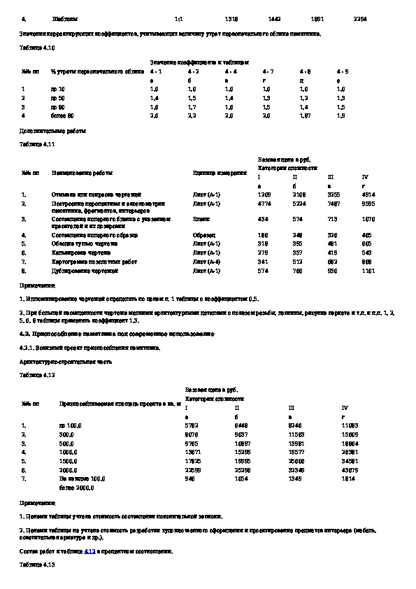 Сборник базовых цен для определения стоимости проектных работ по реставрации и реконструкции зданий и сооружений