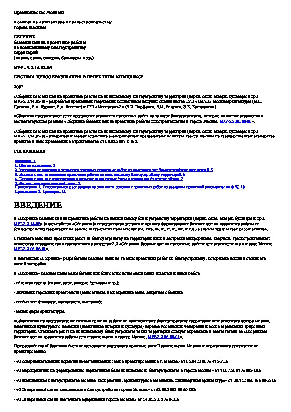 Наша цель состоит в том, чтобы предоставить вам быстрый доступ к содержанию документа Сборник базовых цен на проектные работы по комплексному благоустройству территории (парки, сады, скверы, бульвары и др.).
