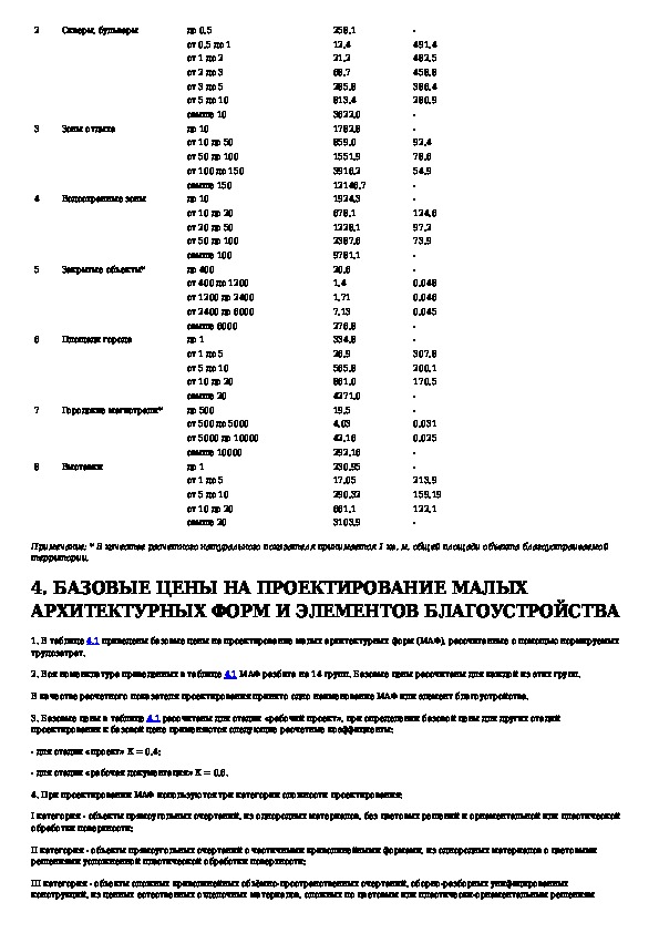 Сборник базовых цен на проектные работы по комплексному благоустройству территории (парки, сады, скверы, бульвары и др.)