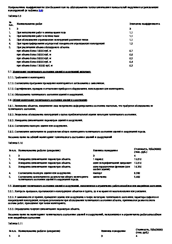 Сборник базовых цен на работы по обследованию и мониторингу технического состояния строительных конструкций и инженерного обору