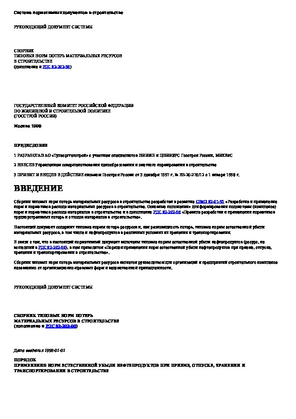 Сборник типовых норм потерь материальных ресурсов в строительстве (дополнение к РДС 82-202-96)