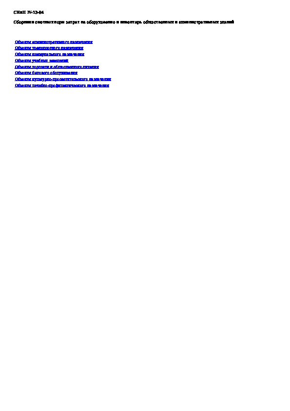 Наша цель состоит в том, чтобы предоставить вам быстрый доступ к содержанию документа Сборники сметных норм затрат на оборудование и инвентарь общественных и административных зданий.