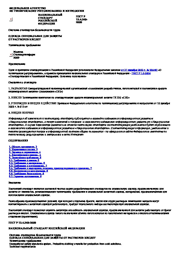 Наша цель состоит в том, чтобы предоставить вам быстрый доступ к содержанию документа Система стандартов безопасности труда. Одежда специальная для защиты от растворов кислот. Технические требования.