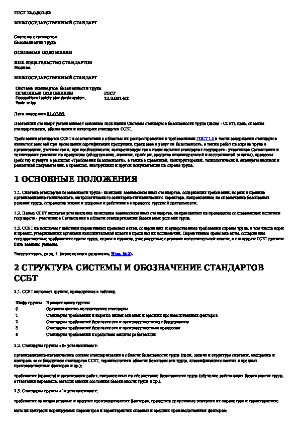 ГОСТ 12.0.001-82: Система стандартов безопасности труда. Основные положения
