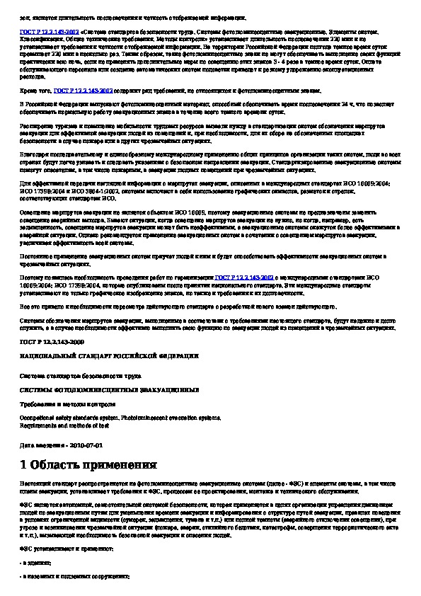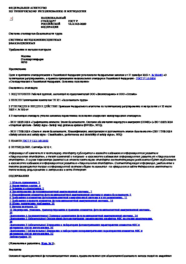 ГОСТ Р 12.2.143-2009: Система стандартов безопасности труда. Системы фотолюминесцентные эвакуационные. Требования и методы контроля