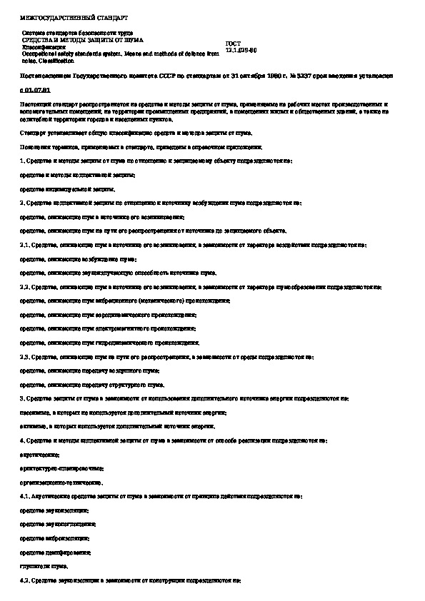 ГОСТ 12.1.029-80: Система стандартов безопасности труда. Средства и методы защиты от шума. Классификация
