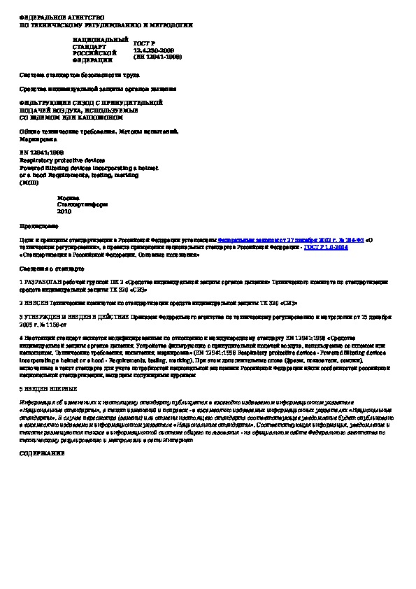 Наша цель состоит в том, чтобы предоставить вам быстрый доступ к содержанию документа Система стандартов безопасности труда. Средства индивидуальной защиты органов дыхания. Фильтрующие СИЗОД с принудительной подач.