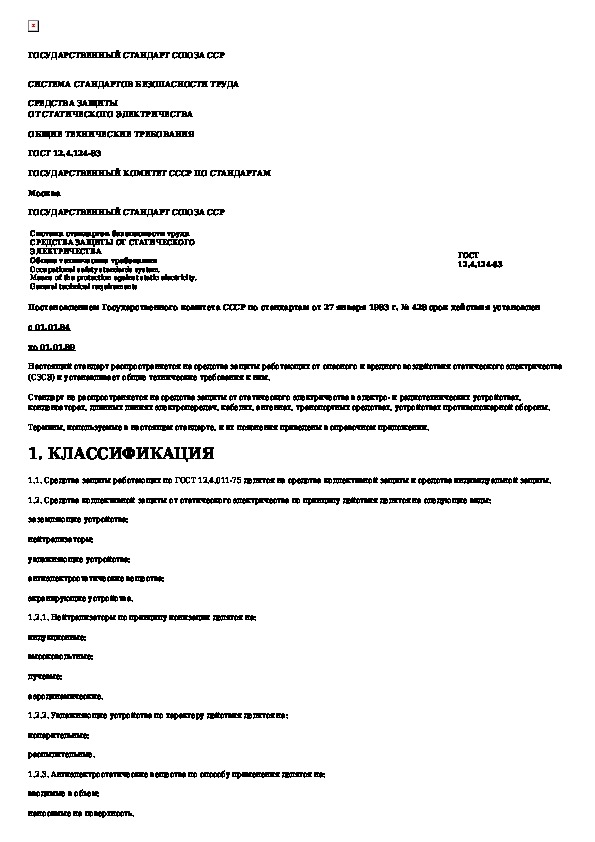 ГОСТ 12.4.124-83: Система стандартов безопасности труда. Средства защиты от статического электричества. Общие технические требования