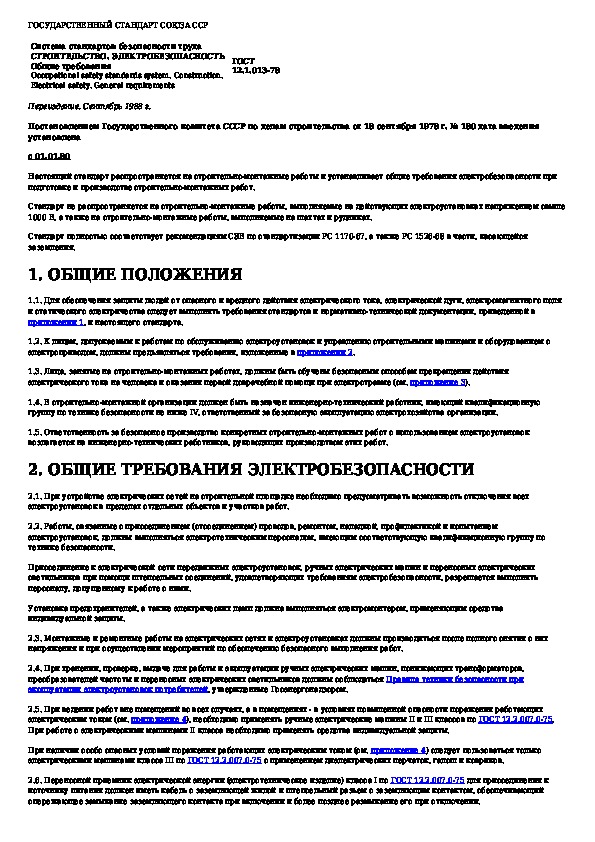 Наша цель состоит в том, чтобы предоставить вам быстрый доступ к содержанию документа Система стандартов безопасности труда. Строительство. Электробезопасность. Общие требования.