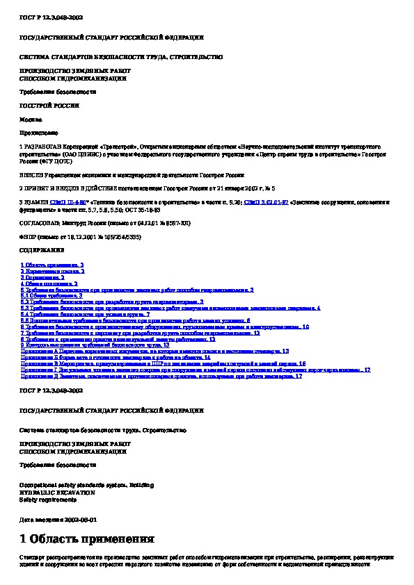 ГОСТ Р 12.3.048-2002: Система стандартов безопасности труда. Строительство. Производство земляных работ способом гидромеханизации. Требования безопас