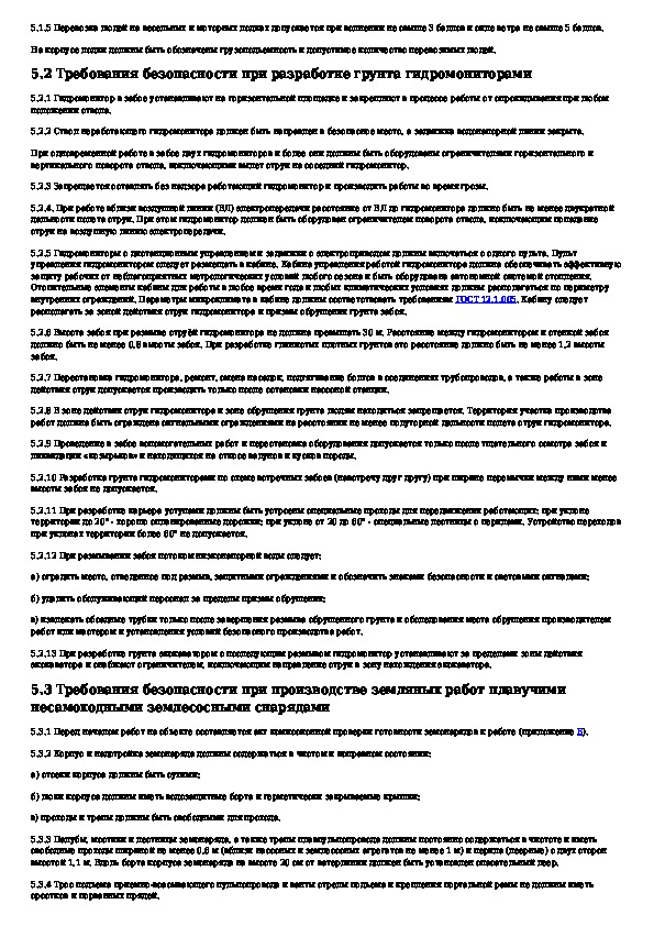 Система стандартов безопасности труда. Строительство. Производство земляных работ способом гидромеханизации. Требования безопас