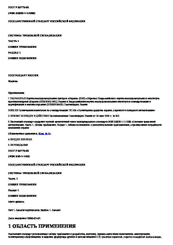 Наша цель состоит в том, чтобы предоставить вам быстрый доступ к содержанию документа Системы тревожной сигнализации. Часть 1. Общие требования. Раздел 1. Общие положения.