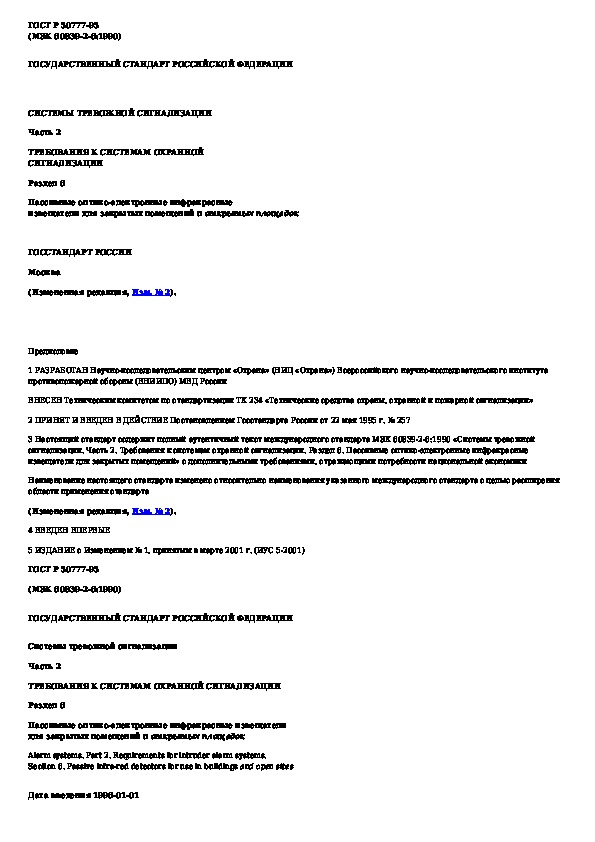 Наша цель состоит в том, чтобы предоставить вам быстрый доступ к содержанию документа Системы тревожной сигнализации. Часть 2. Требования к системам охранной сигнализации. Раздел 6. Пассивные оптико-электронные инфра.