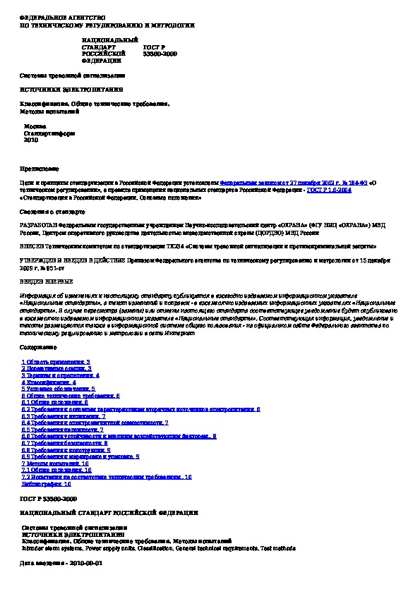 Наша цель состоит в том, чтобы предоставить вам быстрый доступ к содержанию документа Системы тревожной сигнализации. Источники электропитания. Классификация. Общие технические требования. Методы испытаний.