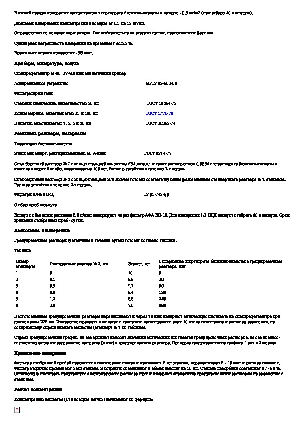 Спектрофотометрическое измерение концентраций билимин-кислоты хлоргидрата в воздухе рабочей зоны