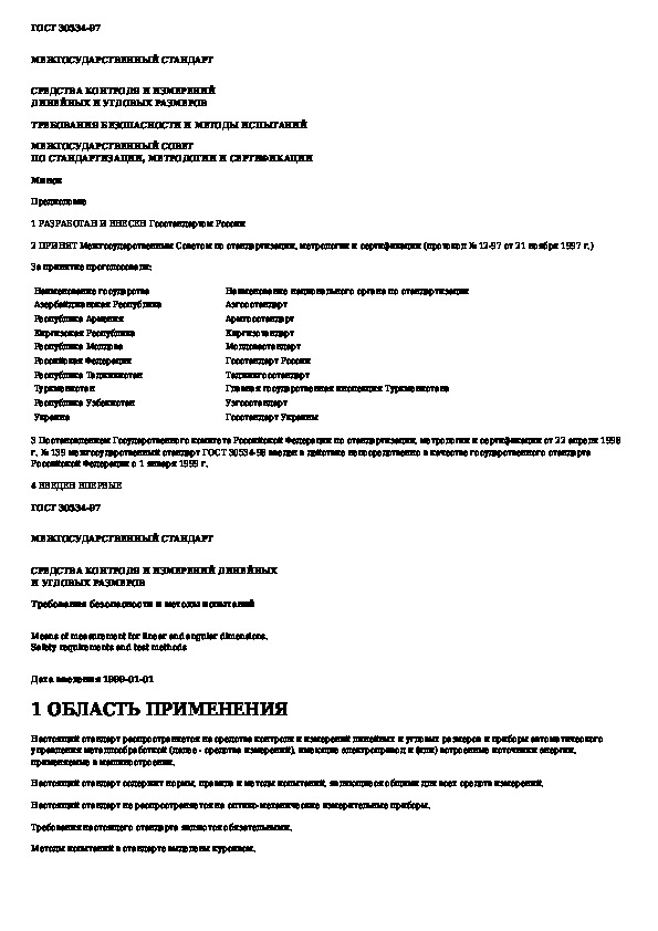 ГОСТ 30534-97: Средства контроля и измерений линейных и угловых размеров. Требования безопасности и методы испытаний