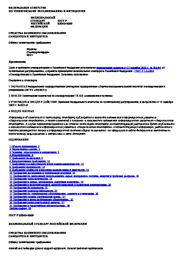ГОСТ Р 53543-2009: Средства наземного обслуживания самолетов и вертолетов. Общие технические требования