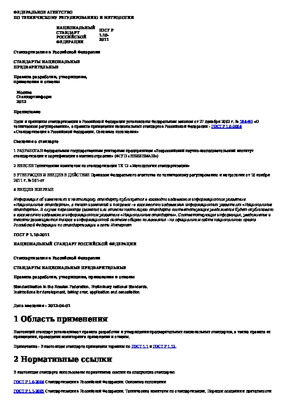 Наша цель состоит в том, чтобы предоставить вам быстрый доступ к содержанию документа Стандартизация в Российской Федерации. Стандарты национальные предварительные. Правила разработки, утверждения, применения и отм.