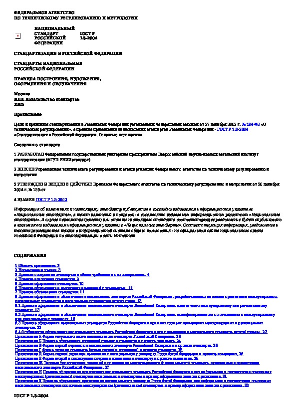ГОСТ Р 1.5-2004: Стандартизация в Российской Федерации. Стандарты национальные Российской Федерации. Правила построения, изложения, оформления и