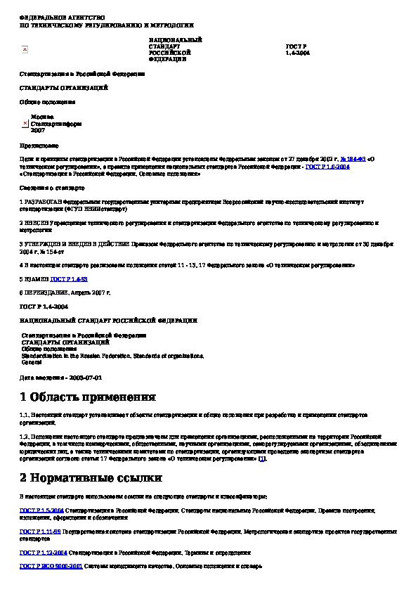 ГОСТ Р 1.4-2004: Стандартизация в Российской Федерации. Стандарты организаций. Общие положения