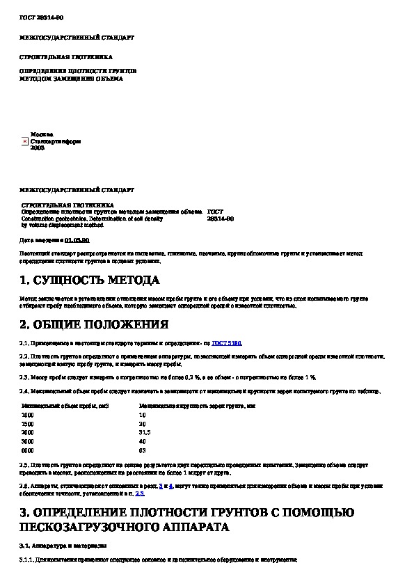ГОСТ 28514-90: Строительная геотехника. Определение плотности грунтов методом замещения объема