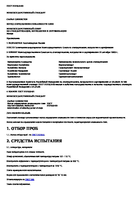 Наша цель состоит в том, чтобы предоставить вам быстрый доступ к содержанию документа Сырье глинистое. Метод определения спекаемости глин.