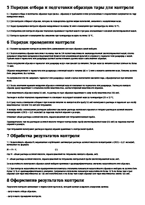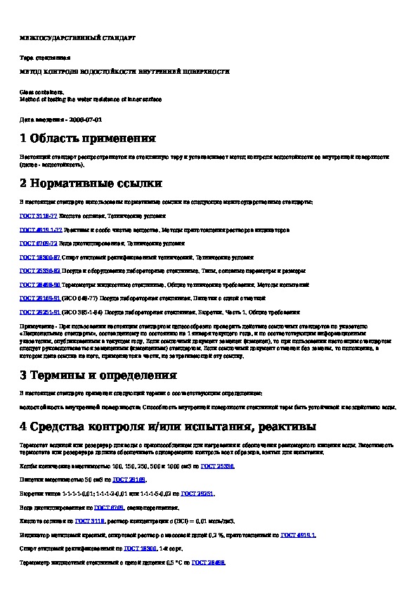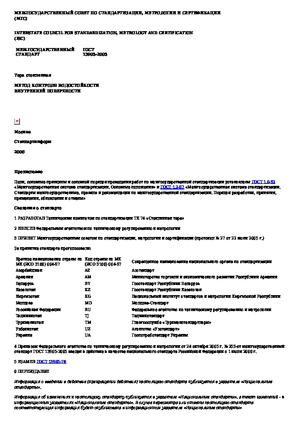 ГОСТ 13905-2005: Тара стеклянная. Метод контроля водостойкости внутренней поверхности