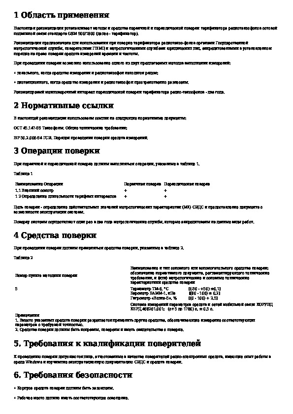Наша цель состоит в том, чтобы предоставить вам быстрый доступ к содержанию документа Тарификаторы радиотаксофонов сотовой подвижной связи стандарта GSM 900/1800. Методика поверки.