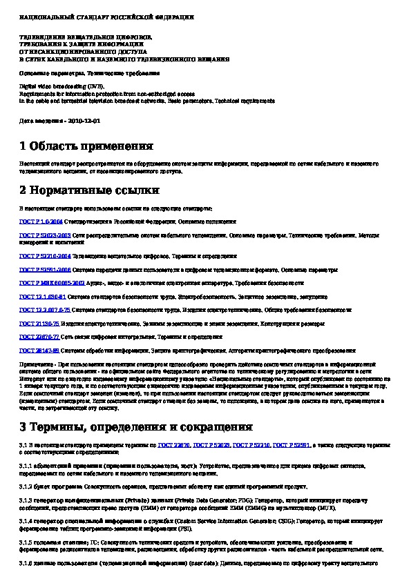 ГОСТ Р 53531-2009: Телевидение вещательное цифровое. Требования к защите информации от несанкционированного доступа в сетях кабельного и наземного