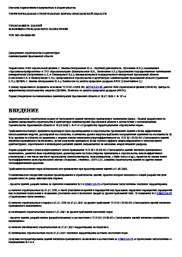 ТСН 301-23-2000-ЯО: Теплозащита зданий жилищно-гражданского назначения