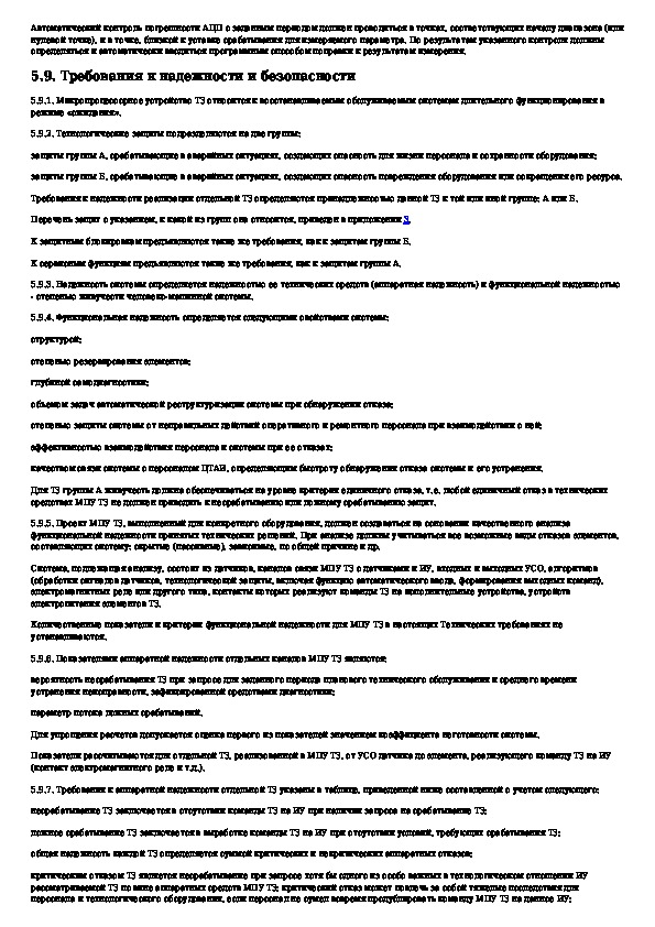 Технические требования к подсистеме технологических защит, выполненных на базе микропроцессорной техники