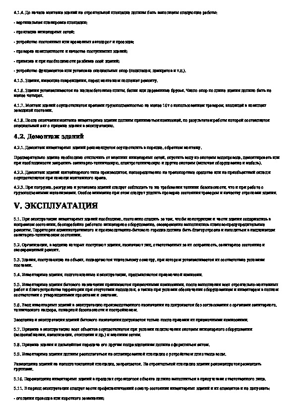 Технические указания по транспортированию, монтажу, эксплуатации и ремонту инвентарных зданий