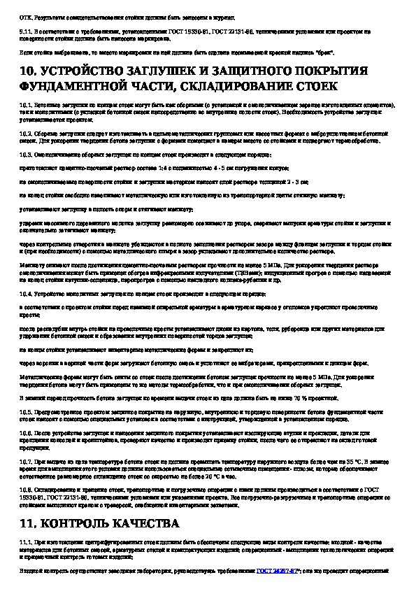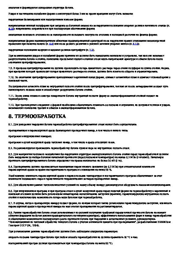 Технологические правила изготовления центрифугированных стоек опор контактной сети, линий связи и автоблокировки