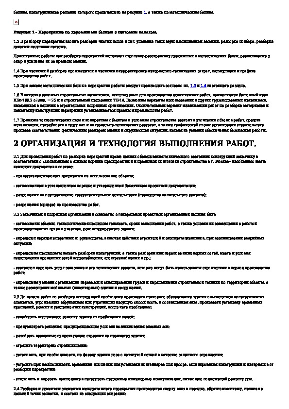Технологические схемы на разборку и демонтаж конструкций междуэтажных перекрытий