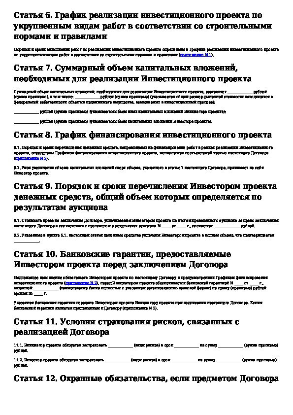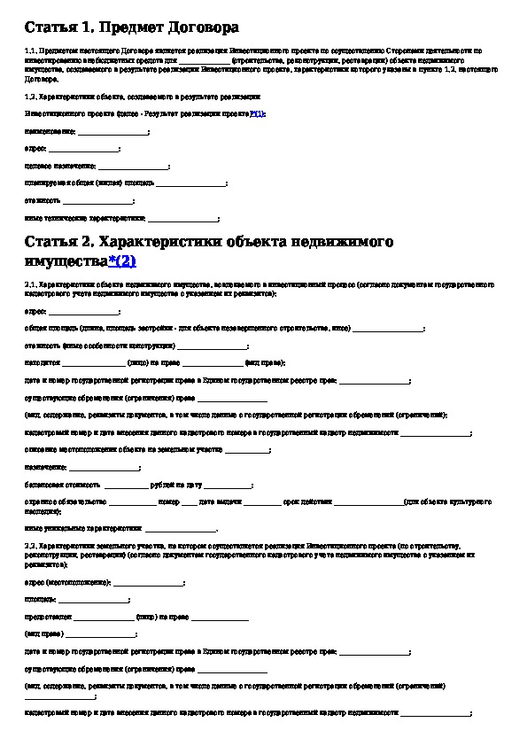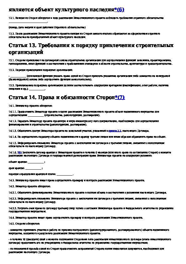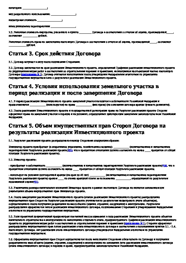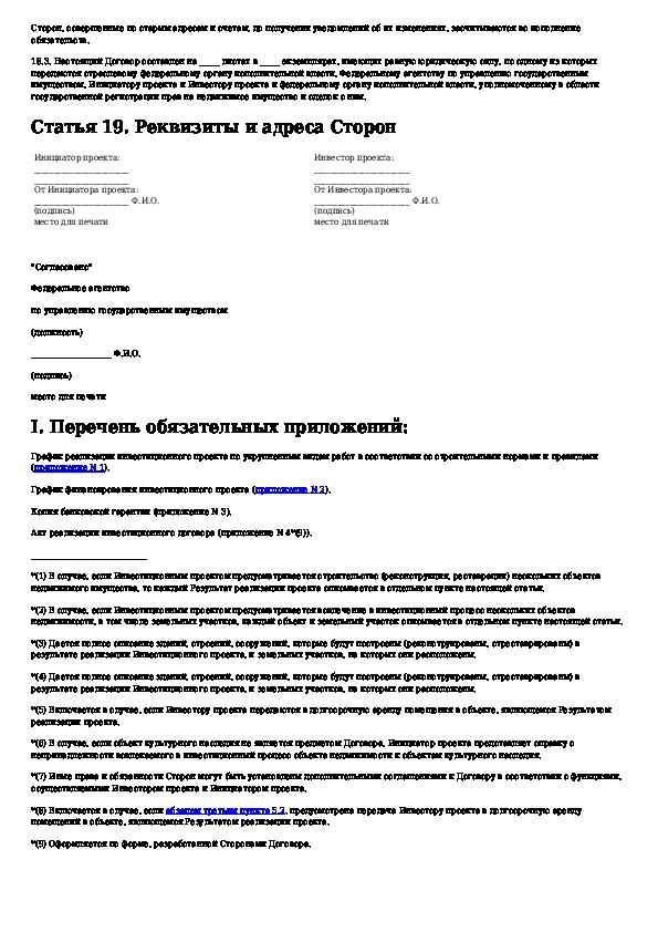 Типовая форма инвестиционного договора в отношении находящихся в федеральной собственности объектов недвижимого имущества
