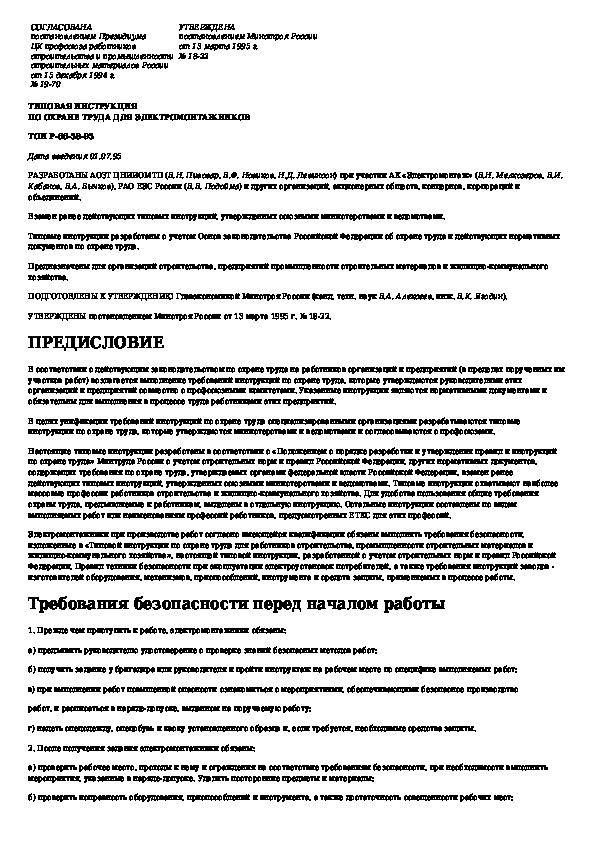 Наша цель состоит в том, чтобы предоставить вам быстрый доступ к содержанию документа Типовая инструкция по охране труда для электромонтажников.