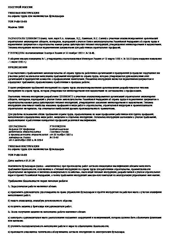ТОИ Р-66-12-93: Типовая инструкция по охране труда для машинистов бульдозеров