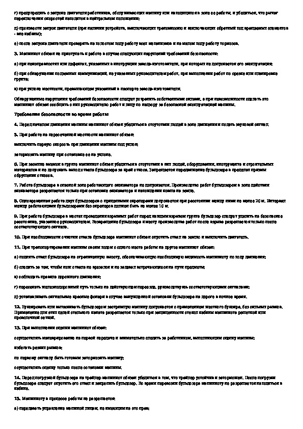 Типовая инструкция по охране труда для машинистов бульдозеров