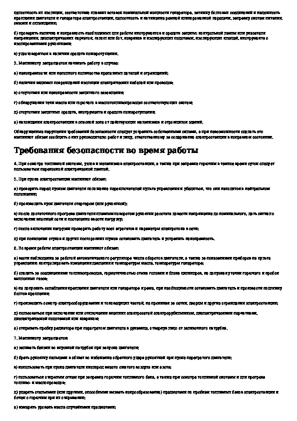 Типовая инструкция по охране труда для машинистов электростанций передвижных