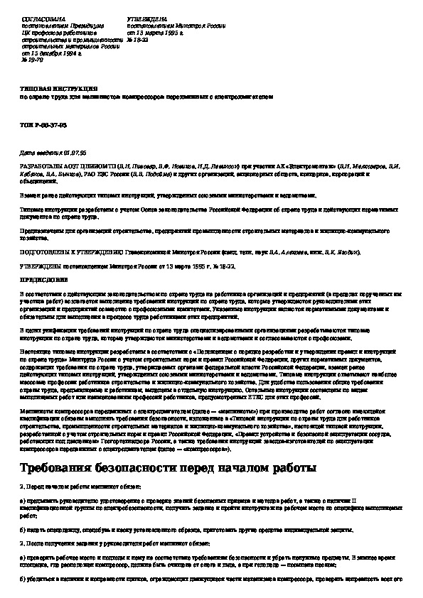 Типовая инструкция по охране труда для машинистов компрессоров передвижных с электродвигателем
