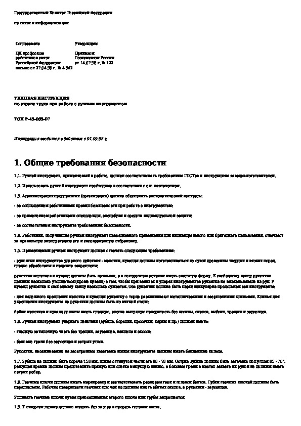 Наша цель состоит в том, чтобы предоставить вам быстрый доступ к содержанию документа Типовая инструкция по охране труда при работе с ручным инструментом.