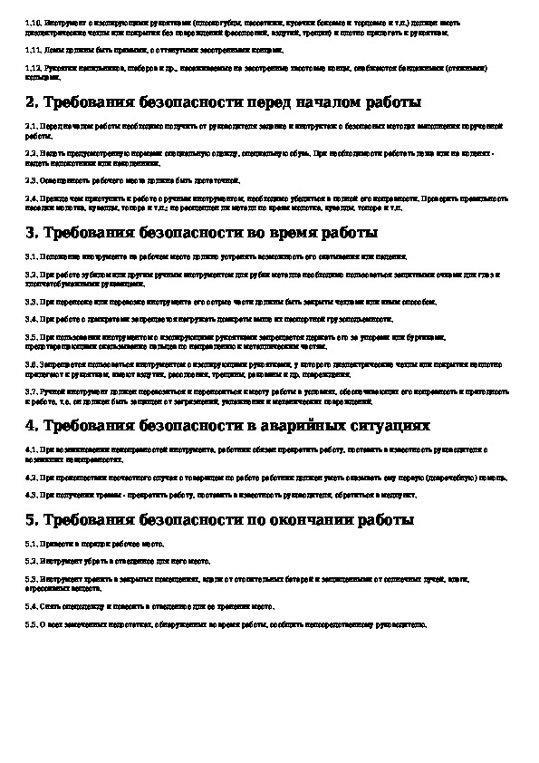 Типовая инструкция по охране труда при работе с ручным инструментом