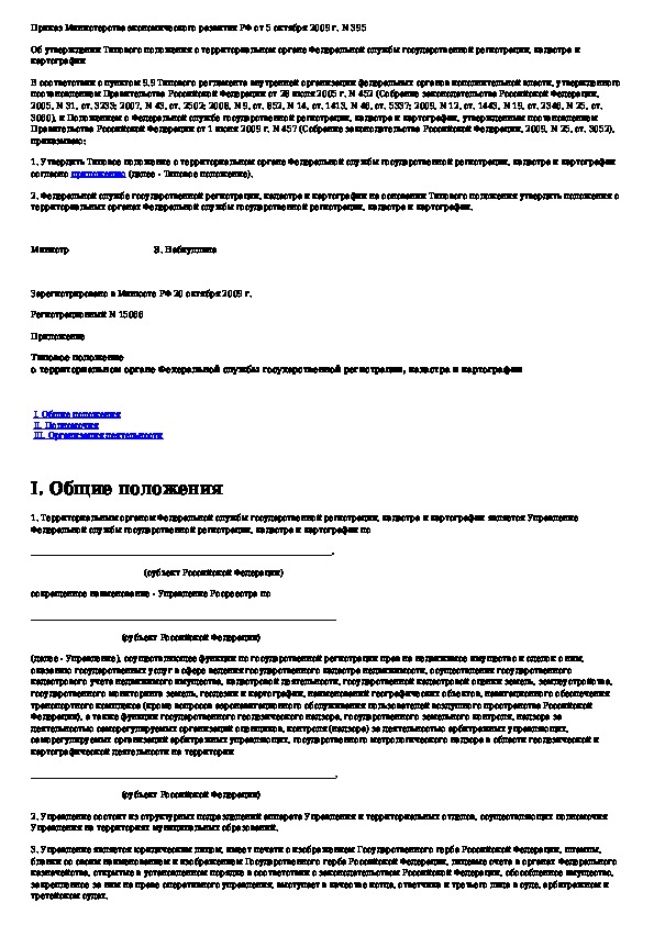 Типовое положение о территориальном органе Федеральной службы государственной регистрации, кадастра и картографии