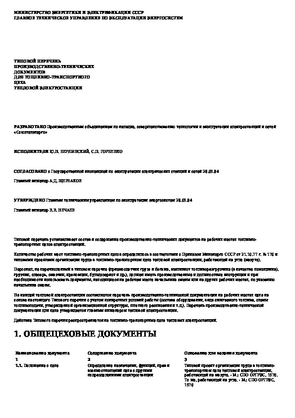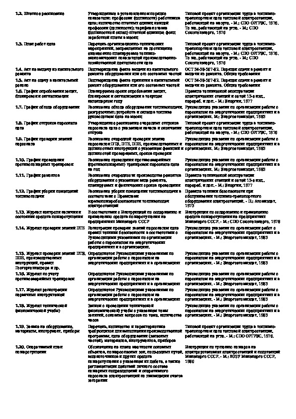 Типовой перечень производственно-технических документов для топливно-транспортного цеха тепловой электростанции