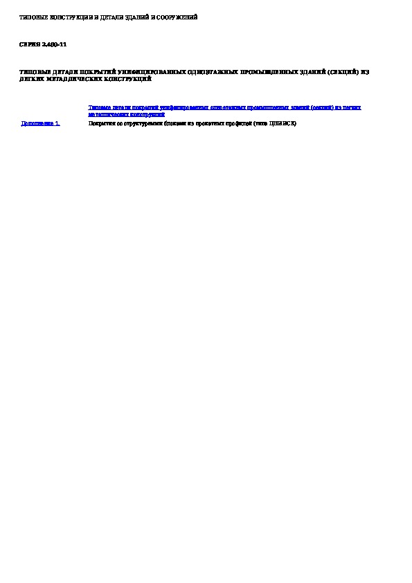 Наша цель состоит в том, чтобы предоставить вам быстрый доступ к содержанию документа Типовые детали покрытий унифицированных зданий (секций) из легких металлических конструкций.