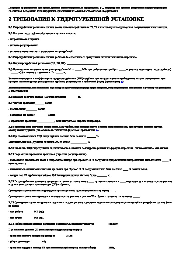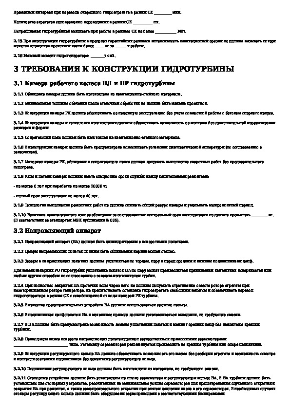 Типовые технические требования к гидротурбинному оборудованию, поставляемому заводами-изготовителями на ГЭС