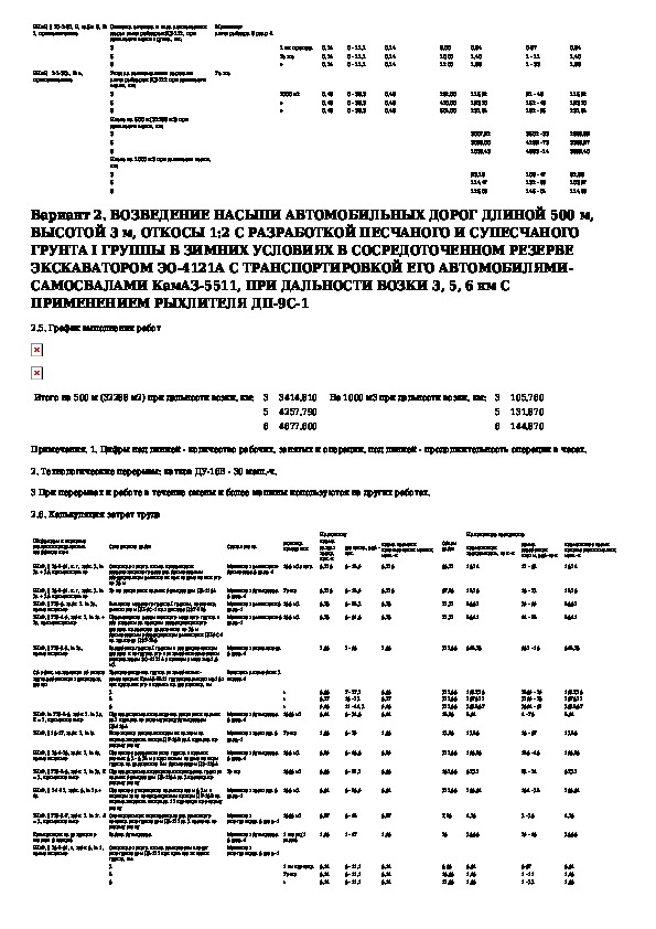 Типовые технологические карты комплексно-механизированного процесса. Возведение насыпи автомобильной дороги длиной 500 м, высотой