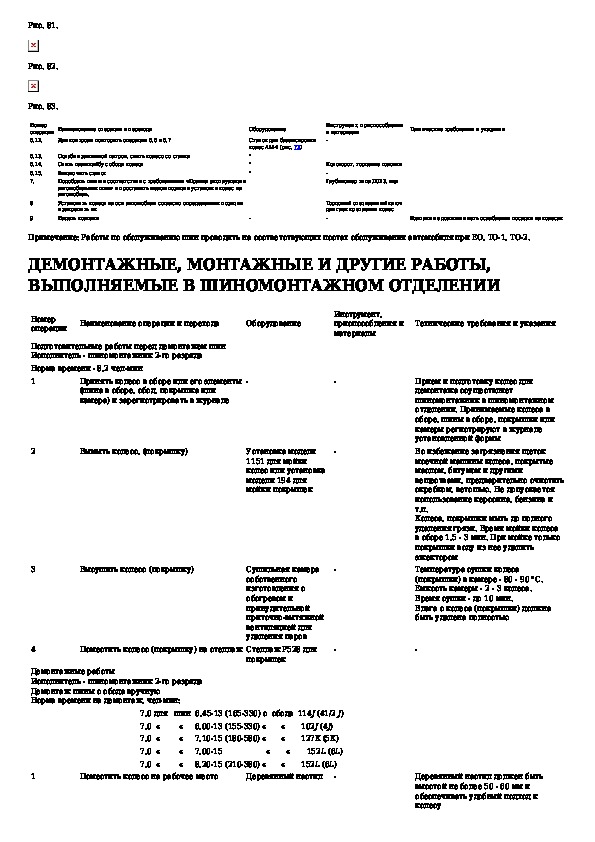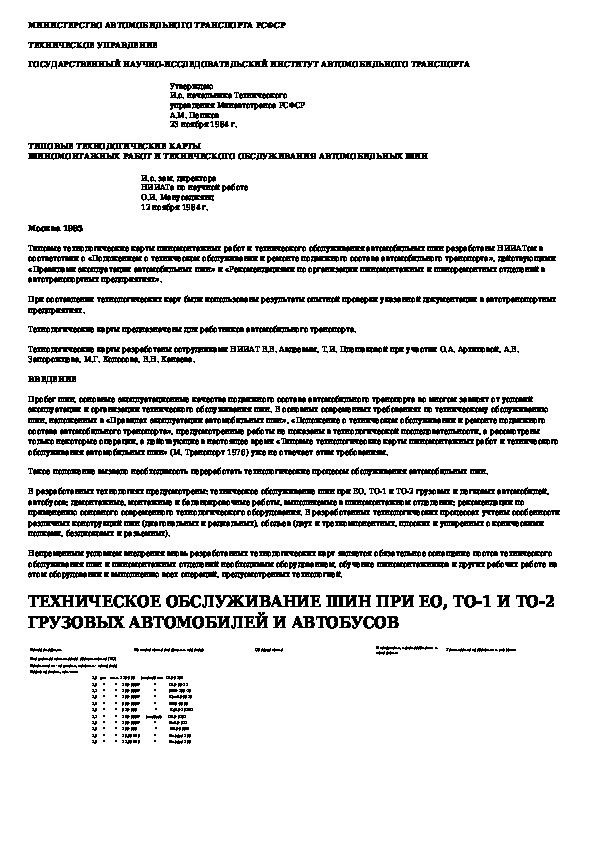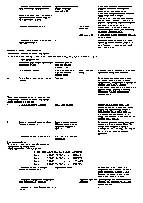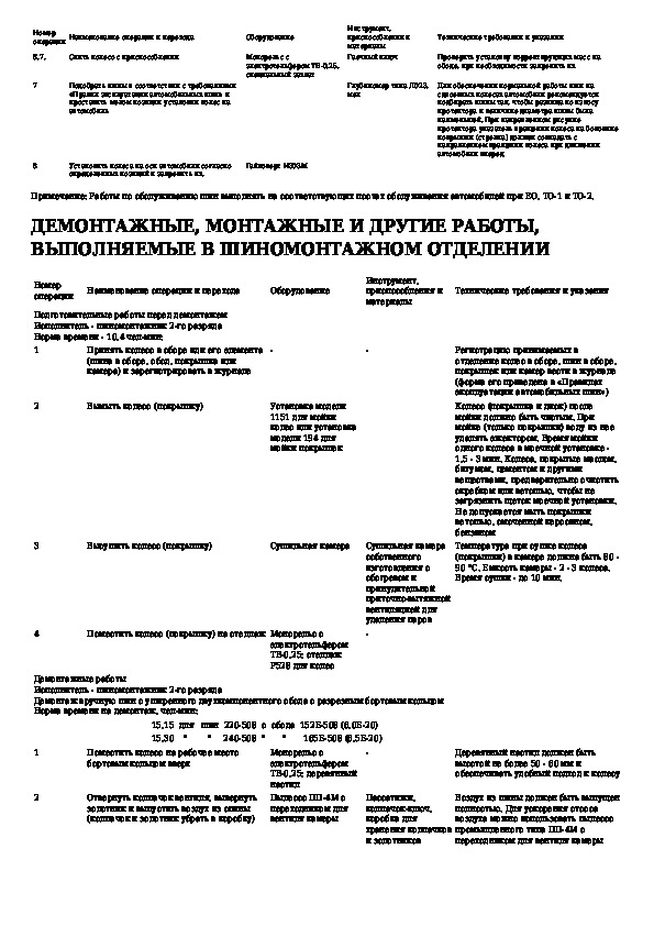 Типовые технологические карты шиномонтажных работ и технического обслуживания автомобильных шин
